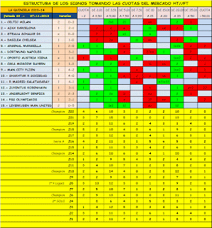 Me parece que de lo más aprovechable que hay para mañana está el doble resultado Manchester City/Manchester City frente al débil Viktoria Plzen. El cual todavía no ha sumado ni un solo punto. La cuota no es gran cosa, 1´50, pero la de más de 2,5 goles está a sólo 1,44. Entre las dos me parece mejor la primera. Están empezando a jugar muy bien. Los ví el otro día contra el Tottenham y me gustaron mucho. La alineación más probable es : Hart, Zabaleta, Kolarov, Fernandinho, Demichelis, Lescott, Navas, Touré, Negredo, Agüero, Nasri. Un verdadero equipazo. Necesitan ganar para tratar de arrebatarle la primera posición del grupo al Bayern, y practican un estilo directo. Así que seguramente van a salir con intensidad desde el primer momento.