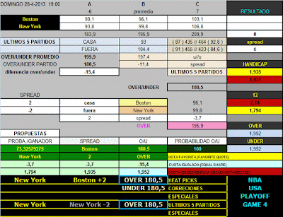 BALONCESTO 28.4.13 19:00 (hora española) NBA BOSTON-NEW YORK ; OVER 180.5 1.952€ (Pinnacle) stake 4/10