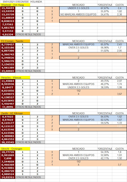 FUTBOL; ESTRATEGIA AL MARCADOR EXACTO EERSTE DIVISIE HOLANDA 8 ENERO 2021.