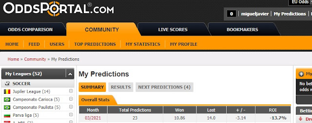 FUTBOL, RESULTADOS DE LOS PRONOSTICOS DEL MERCOLES 10 MARZO 2021 Y EL BALANCE DEL MES.