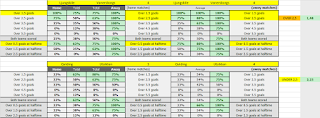 os dejo un excel en los grupos de telegram, he sacado la estadística de los mercados al over 1,5 2,5 3,5 ambos equipos marcan y gol al descanso, poniendo según el porcentaje que llevan cada uno de los mercados mi pronóstico, ya sabéis stake 1/10 y no combinar.